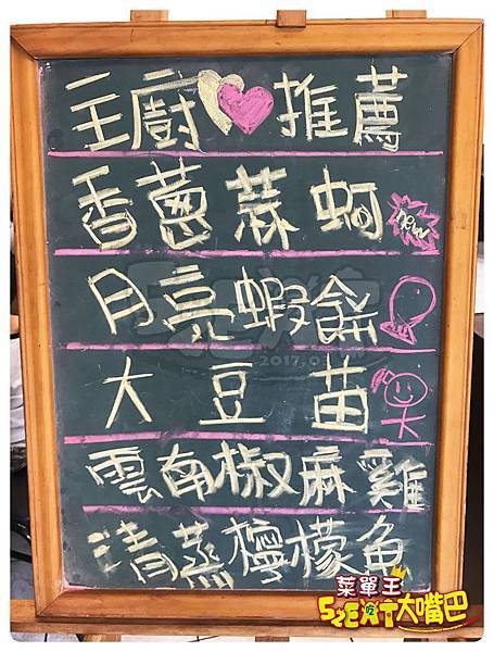 ▲今日主廚推薦有「香蔥蒜蚵、月亮蝦餅、大豆苗、雲南椒麻雞、清蒸檸檬魚」!