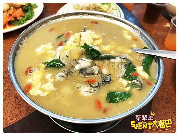 ▲「麻油蚵仔」裡頭有蚵仔、蛋、枸杞、九層塔及麻油!有些人會怕麻油味太重而不敢吃,但是吃來麻油味不會太重,表現剛好!這道很有「藥膳養生」的概念!