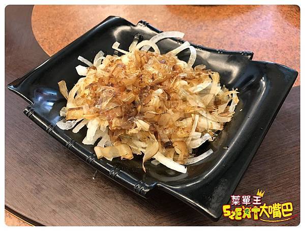 ▲「涼拌洋蔥」上頭撒上了柴魚,夠香!這道很「嗆辣」!要小心!要小心喔!