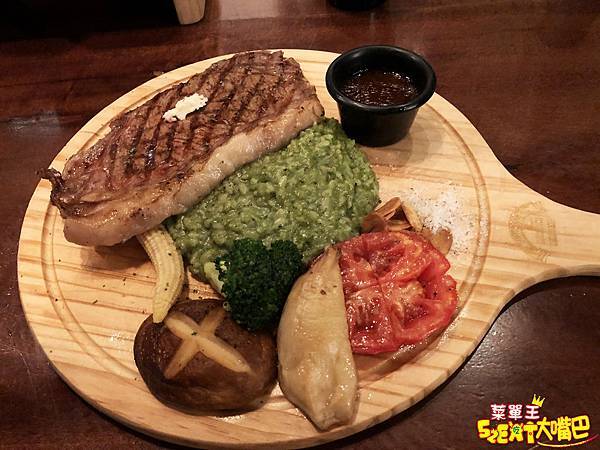 ▼紐約客排餐,附餐可以選擇薯條或是燉飯,今天選擇的是燉飯,一整個看起來有種吃不完的感覺,這個青醬燉飯未免也太多~加上一旁的紐約客牛排,這一道吃下來啤酒都喝不下了,建議可以一起分食。