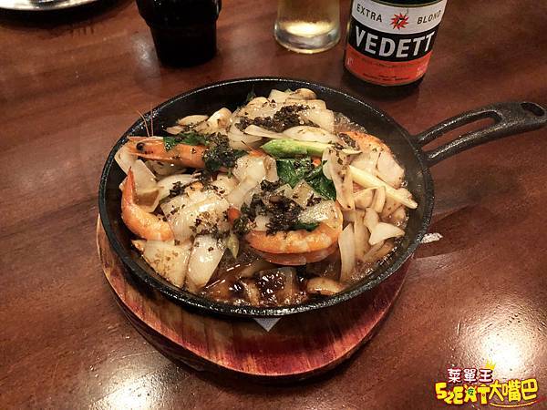 ▼油醋蒜味蘑菇蝦,蒜味沒有想像中的明顯,不過鮮蝦與洋蔥加上義大利油醋整體的搭配卻是意想不到的合拍,配啤酒很涮口!