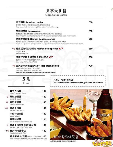 ▼最後來個薯條小點,波浪薯、脆薯、楔型薯,兩種沾醬都挺好吃的,做個完美的endding真的是還挺不錯的!再次提醒大家喝酒不開車,開車不喝酒!