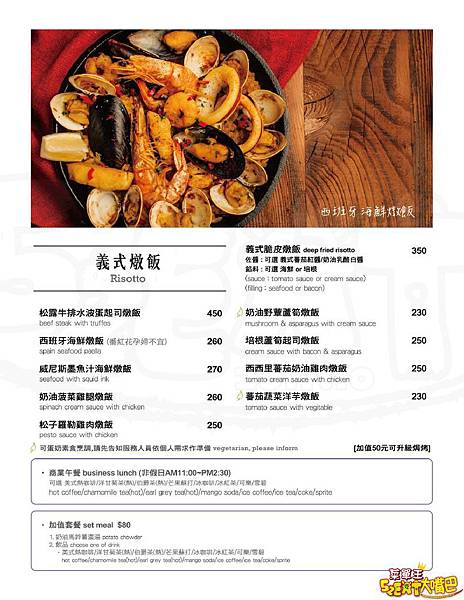 ▼西班牙海鮮燉飯的份量也很驚人,除了海鮮新鮮之外燉飯的份量超乎想像,味道和一般吃到的海鮮燉飯不太一樣,主要是番紅花的香氣令人著迷,不過孕婦忌食番紅花,要多注意哦!