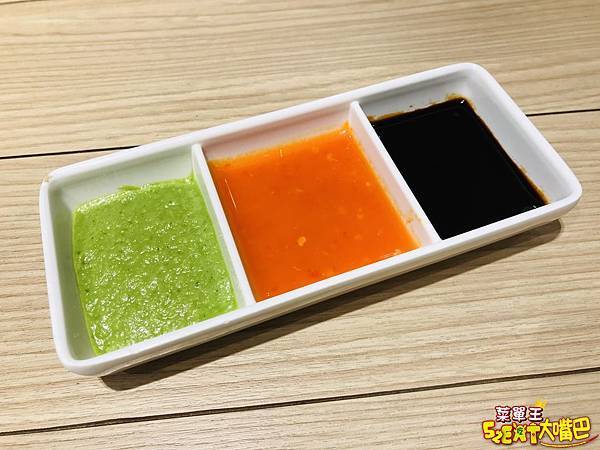 ▼綠色的沾醬,一開始以為是哇沙米,沾了才知道這靑醬是青蔥醬,有淡淡青蔥及薑的清香。