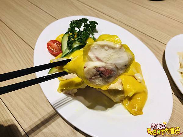 ▼雞肉很嫩,薑黃顏色讓雞皮看起來油亮油亮的很不錯,看了就很想吃。